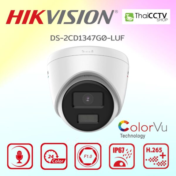 DS-2CD1347G0-LUF กล้องวงจรปิด Hikvision ColorVu IP 4ล้านพิกเซล มีไมค์อัดเสียงได้