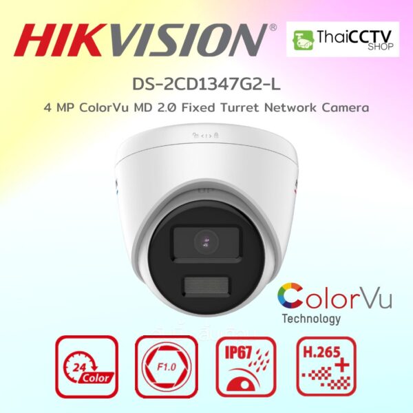 DS-2CD1347G2-L กล้องวงจรปิด Hikvision ColorVu ความคมชัด 4 ล้านพิกเซลภาพสี 24 ชั่วโมง