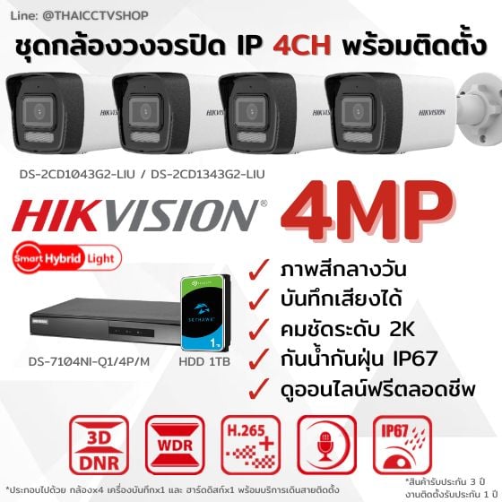 กล้องวงจรปิด Hikvision IP รุ่น DS-2CD1043G2-LIU / DS-2CD1343G2-LIU 4 ตัว