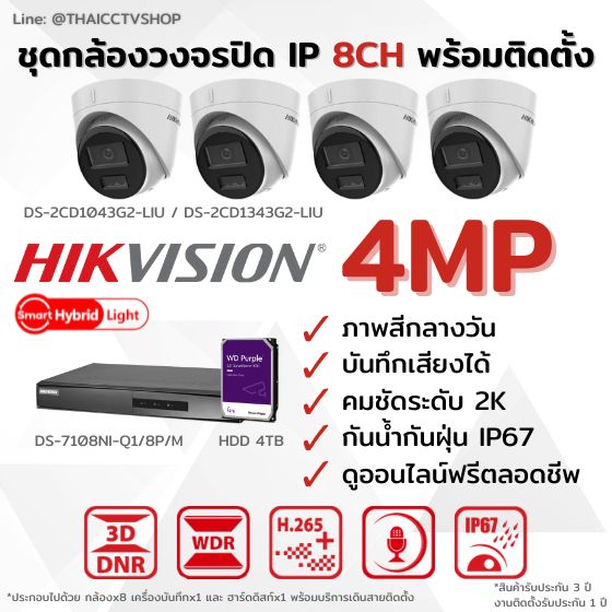 ชุดกล้องวงจรปิด Hikvison IP 4mp 8 ตัว พร้อมบริการติดตั้ง